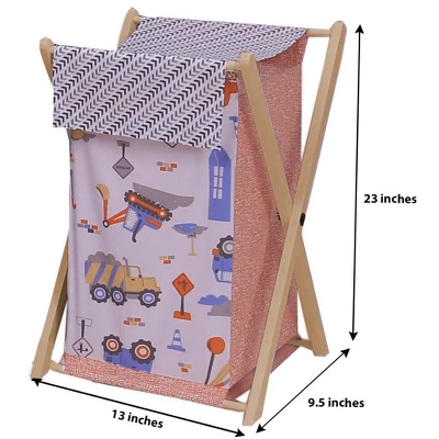 Bacati – Construction Gray Yellow Orange Boys Laundry Hamper With Wooden Frame