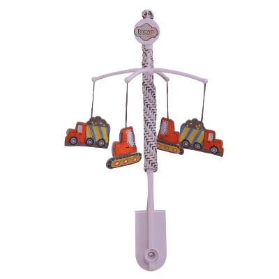 - This Bacati 10-piece Crib Set Includes Reversible Comforter/Playmat (33 x 43 inches), Crib fitted sheet (52 x 28 x 6 inches), Crib Skirt/Dust ruffle (13 inch drop) Diaper Stacker (holds more than 30 newborn diapers), Reversible Long Crib Rail Guard Cover (52 x 12 inches), Window Valance (15 h x 56 w inches with 1.75 inch Rod Pocket), 3 pc Wall Hangings Set and Musical Mobile in fun, colorful and signature prints in 100 percent cotton 200 Thread Count percale fabrics. Designed in United States by Experienced Designers. Many coordinating items available to purchase separately in this Bacati Construction Yellow Orange Blue Gray Bedding Collection.