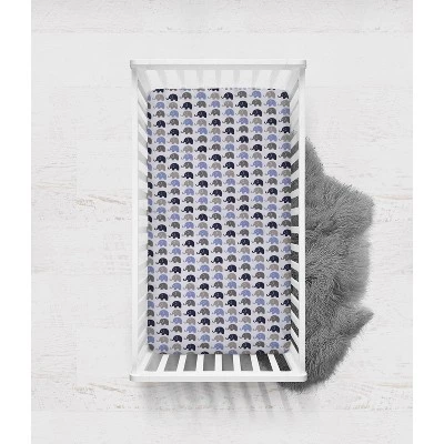 Bacati – Elephant Blue, Navy, Gray 100 Percent Cotton Universal Baby Crib Or Toddler Bed Fitted Sheet
