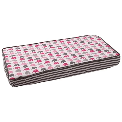 Ensure that your little one stays comfortable and secure with super soft Bacati – Elephants Pink/Fuschia/Gray Quilted Changing Pad Cover. It is made with 100% cotton quilted cotton fabric on top with soft Polly fill to support and cushion your child while you change her diaper. It is accentuated with grey chording with pin stripes gusset. It fits all standard changing pads including contoured changing pads. It is machine washable and gets softer with every wash. It is made from 100% cotton with poly fill. Size: 17 x 32 x 6 inches. It can be coordinated with Bacati – Elephants Pink/Fuschia/Gray Bedding Collection. Protect your changing pad while keeping your baby’s room looking beautifully coordinated and stylish. We made it better so you can feel better.
