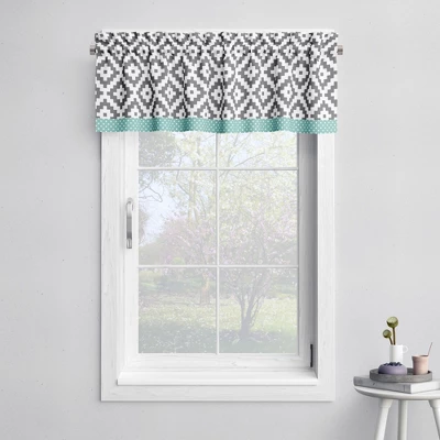 - This Bacati 10-piece Crib Set Includes Reversible Comforter/Playmat (33 x 43 inches), Two Crib fitted sheets (52 x 28 x 6 inches), Crib Skirt/Dust ruffle (13 inch drop) Diaper Stacker (holds more than 30 newborn diapers), Window Valance (15 h x 56 w inches with 1.75 inch Rod Pocket), 3 pc Wall Hangings Set and Musical Mobile in fun, colorful and signature prints in 100 percent cotton 200 Thread Count percale fabrics. Designed in United States by Experienced Designers. Many coordinating items available to purchase separately in this Bacati Love Aztec Gray Mint Bedding Collection.