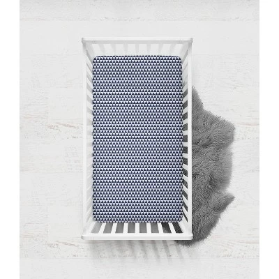 Bacati – Navy Triangles Muslin 100 Percent Cotton Universal Baby US Standard Crib Or Toddler Bed Fitted Sheet