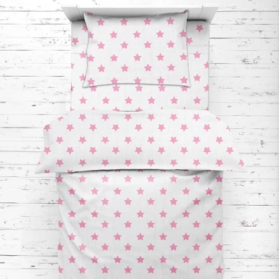 Bacati – Stars Pink Ikat Muslin 4 Pc Toddler Bedding Set..