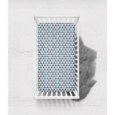 - This Bacati 6-piece Crib Set Includes Reversible Comforter/Playmat (33 x 43 inches), Crib fitted sheet (52 x 28 x 6 inches), Crib Skirt/Dust ruffle (13 inch drop) Diaper Stacker (holds more than 30 newborn diapers), Reversible Long Crib Rail Guard Cover (52 x 12 inches) and Window Valance (15 h x 56 w inches with 1.75 inch Rod Pocket) in fun, colorful and signature prints in 100 percent cotton 200 Thread Count percale fabrics. Designed in United States by Experienced Designers. Many coordinating items available to purchase separately in this Bacati Woodlands Aqua/Navy/Gray Bedding Collection.