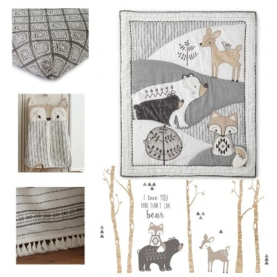 - COORDINATE YOUR BABY NURSERY DECOR: The Bailey Crib Bedding Collection fills the nursery with sweet woodland friends including baby bears, fox cubs and adorable fawns. Coordinate baby’s room with other items from the Baby Bailey range including the fitted sheet, changing pad cover, fuzzy blanket, hamper, lamp base and shade, mobile, playmat and a matching stuffed toy.