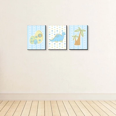 Baby Boy Dinosaur Wall Art Set INCLUDES 3 ready-to-hang baby dinosaur themed panels and non-marking wall mounts for easy hanging. Baby Boy Dinosaur artwork is perfect for a nursery, kids room or playroom. Baby Boy Dinosaur Wall Art & Kids Room Decor SIZE each 10 inches high x 7.5 inches wide x .5 inches thick. Baby dinosaur lightweight art prints will arrive ready to use – no frame needed. The black edge gives each print a modern, finished look. EASY TO HANG: Simply attach a non-marking wall mount (included) to each corner of a Baby Boy Dinosaur art panel and press to hang in desired location. Wall mounts are repositionable, so you can redesign your artwork display at any time. PREMIUM HOME DECOR: 3-piece Baby Boy Dinosaur Wall Art Set is professionally printed on thick material with a black edge. You will not need to frame this set of dinosaur baby room decor. Each standout print is ready to hang and will add a contemporary touch to any room. MADE IN THE USA: Baby Boy Dinosaur Nursery Wall Art & Kids Room Decor is designed and manufactured at our Wisconsin facility using materials that are Made in the USA.