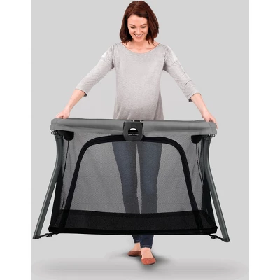 Alfa Lite™ features a compact folded configuration that effortlessly snaps open to offer a full-size, padded sleeping area for infants and toddlers up to 35″ tall. A zip-open side panel allows for gentle placement and soothing of younger babies, while allowing older babies and toddlers to crawl directly in and out.