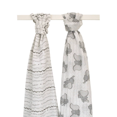Swaddle your baby with the Disney Baby Dumbo Muslin Blankets! This 100% cotton muslin 2Pk blanket set in white and gray features two separate Dumbo prints. A plush Dumbo rattle is also included. The blankets measure 44″ x 44″. This boxed set makes a wonderful gift and coordinates with the full line of Disney Baby giftables!