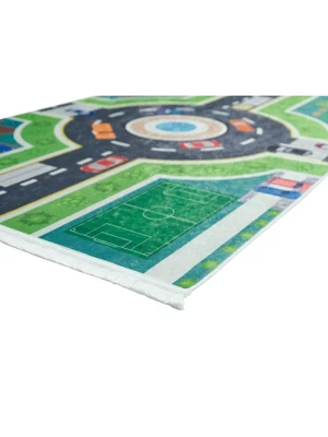 If your child loves playing with toy cars, then the Mother Ruggers Green 4′ x 6′ Vroom Rug is the perfect addition to their playroom or bedroom. Made from the softest velvet and digitally printed with vibrant, stimulating colors, this rug is designed for kids of all ages. It’s durable enough to withstand rough play and frequent use, making it a great investment for any family with active kids and pets. The rug is semi non-slip and machine woven, ensuring that it stays in place during playtime. It’s also machine washable and easy to clean, so you can keep it looking new for years to come. Whether you place it in the living room, kitchen, bedroom, entryway, or covered porch, this rug will add a splash of color and fun to your home. Plus, with a 2-year defective warranty and proper care, you can rest assured that it will last for a long time. Made with love by mothers in Turkey, the Mother Ruggers Green 4′ x 6′ Vroom Rug is the perfect way to make playtime more fun and enjoyable for your little ones.