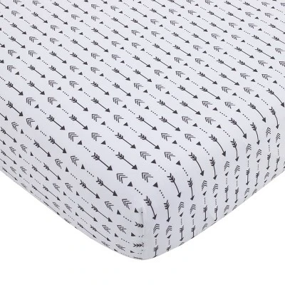 The Little Love Bedding by NoJo Little Man Cave 3 Piece Mini Crib Bedding Set will make a cozy woodsy retreat for your little one’s nursery! This rustic set includes a comforter, and two fitted mini crib sheets. The 30″ x 38″ comforter features a fox and bear under a starry night sky, with a patchwork of moose, buffalo check and rustic arrows that say “Little Man Cave”. Designed in shades of gray, red, black, and ivory. The two 24″ x 38″ x 5″ fitted mini crib sheets are a creamy ivory with an all-over arrow pattern in black. Fits a standard size mini crib. Includes full elastic edges for a safe and snug fit. Machine washable for easy care!