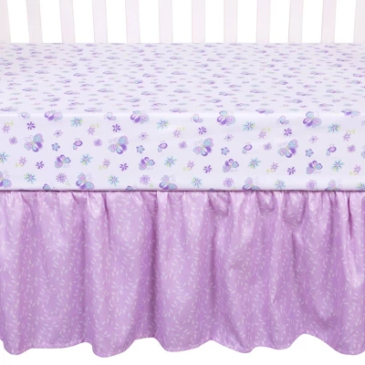 Fitted Crib Sheet fits standard crib mattress 28 in x 52 in with 8-inch deep pockets and is fully elasticized for a secure fit. Sheet features a butterfly print