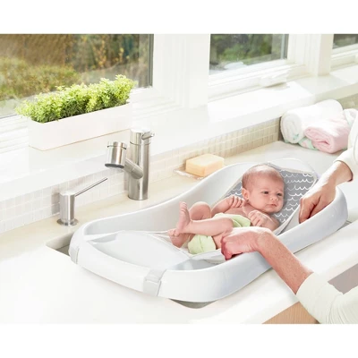 - NEWBORN BATH: Mesh sling provides extra support and comfort during first bath times