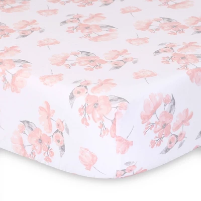 Your little one will feel like a princess in the opulent Brianna 3-Piece Crib Bedding Set from The Peanutshell. Set includes luxurious quilt, fitted sheet, and crib skirt. Quilt features a medley of chiffon fabric flowers and stitched vining on a silk-like fabric in shades of pink and white. gray taffeta and pink netting complete the lush quilt, with a exquisite trellis print in 100% cotton sateen on the reverse. Fitted sheet features a sumptuous watercolor print in shades of pink and gray on a crisp white ground and is sure to delight your little one. Coordinating crib skirt features dimensional flowers made of chiffon on a sheer ruffle. Light as air and so rich to the touch, this stylish set is perfect for your little miss.