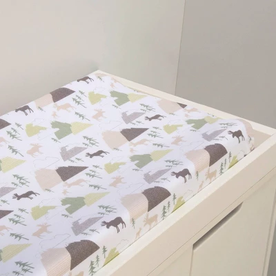 Move mountains in your nursery with the Mountain Baby Changing Pad Cover by Trend Lab. Trend Lab’s Changing Pad Covers are both stylish and comfortable. The Mountain Baby Changing Pad Cover features multi-patterned mountains, Mama moose and baby moose and pine trees in multi-hued greens and grays.