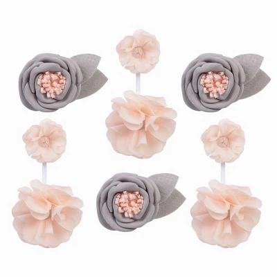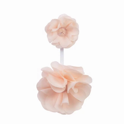 Encourage eye tracking and sound perception skills with this Blush Floral Musical Crib Mobile by Trend Lab. The 1-inch banded mobile ring features a soft coral pink solid. Six pink flower puffs and three gray and pink flower puffs are suspended from white decorative ribbon and slowly rotate to Brahms’ Lullaby. Crib Mobile fits standard crib rail up to 5 inches and measures approximately 24 in tall by 20 in wide when fully assembled.